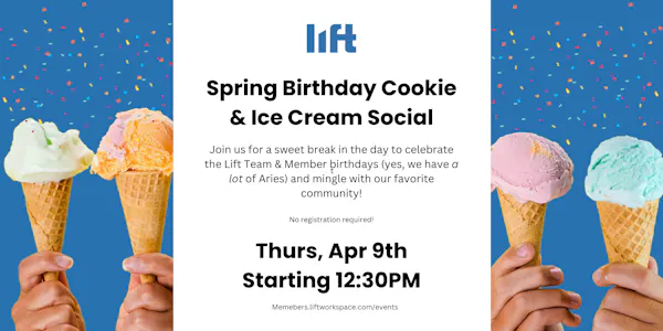 Come join us for a sweet break in the the day to celebrate the Lift Team & Member birthdays (yes, we have a lot of…